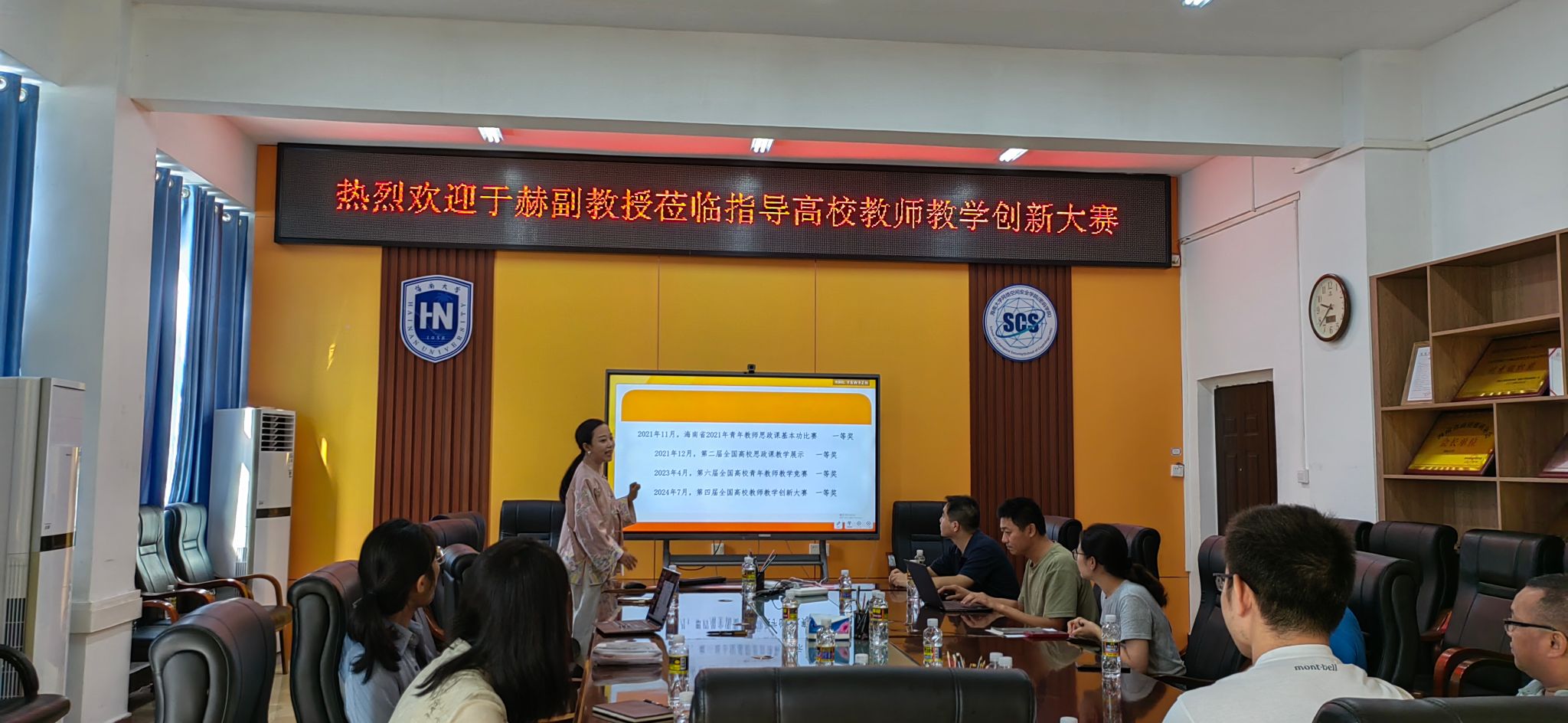 于赫老师以其深厚的教学功底和卓越的创新成果,在两大教学赛事中实现海南省历史性突破。在分享会上,于老师结合自己的参赛经历和教学实践,深入浅出地讲解了如何在教学中融入创新元素,如何设计富有吸引力的课程内容,以及如何有效提升学生的学习兴趣和参与度。她的分享不仅内容详实、条理清晰,而且生动有趣、引人入胜。