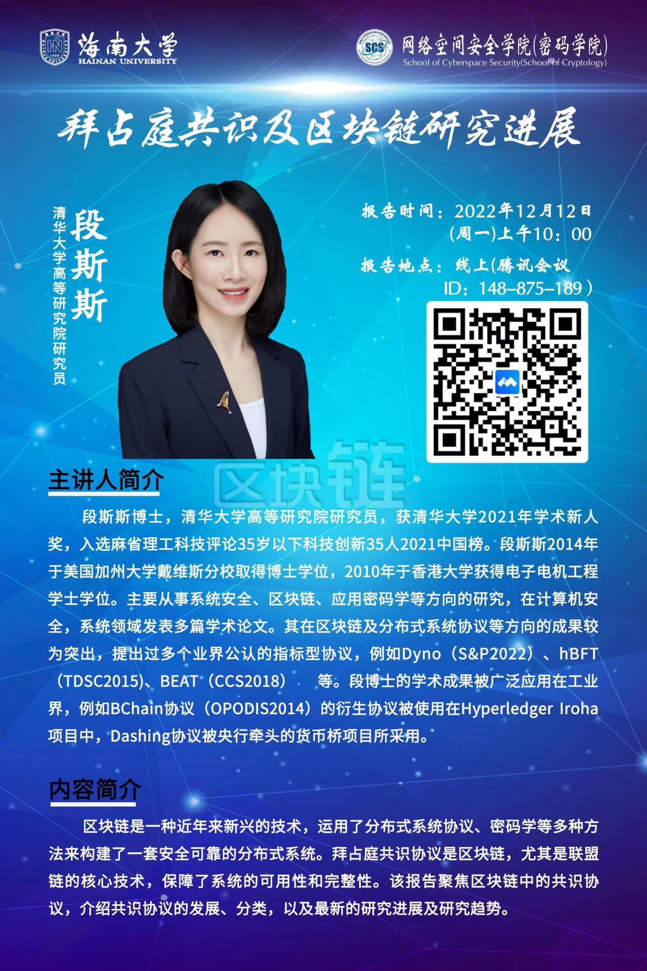 【讲座】拜占庭共识及区块链研究进展--段斯斯