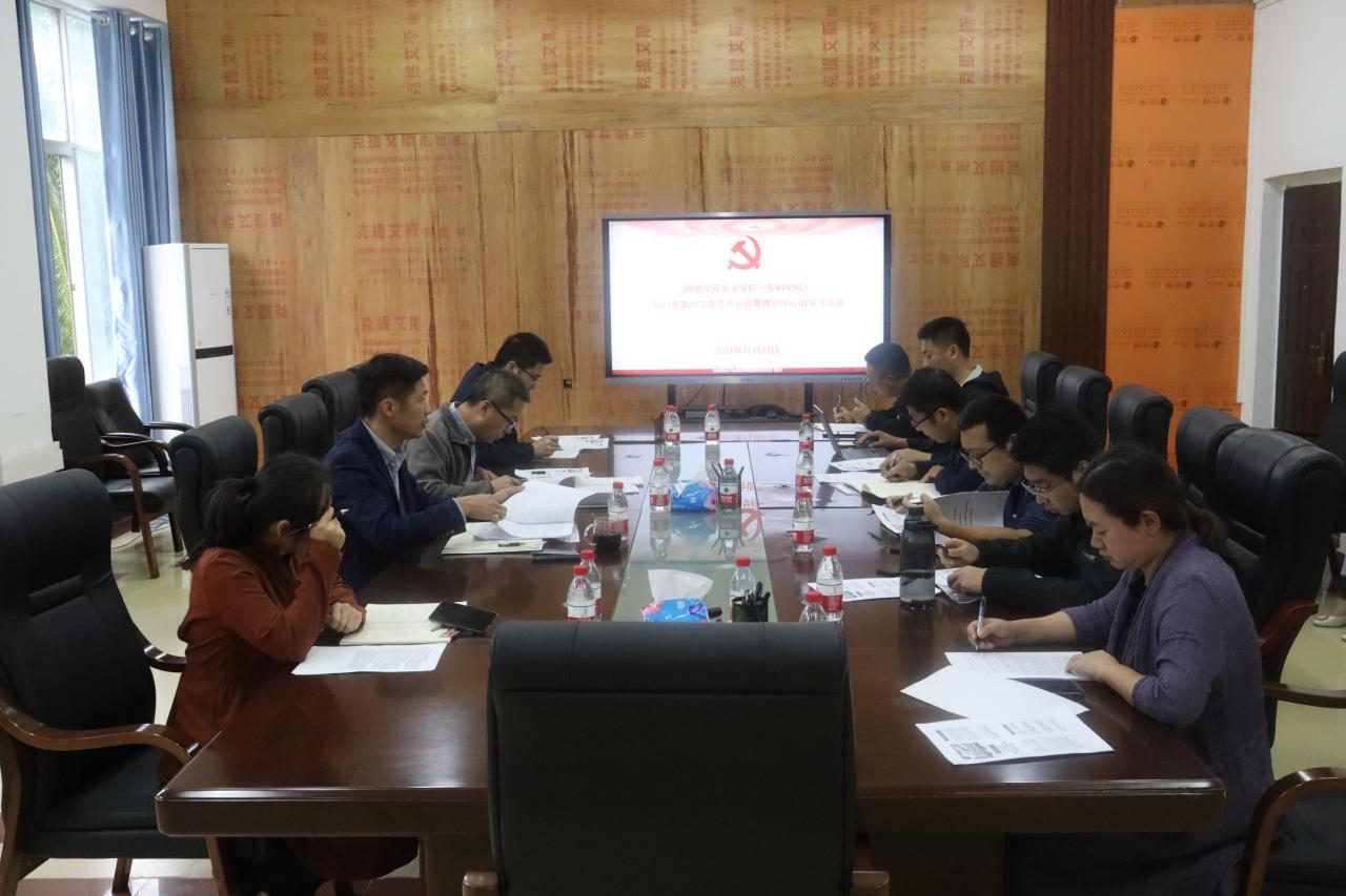 2021年11月23日,beat365在线唯一官网召开理论学习中心组(扩大)会议,专题学习传达党的十九届六中全会精神。学院领导班子成员、党委委员、各系室中心负责人等参加了学习会议。会议由学院党总支书记陈广锐主持。