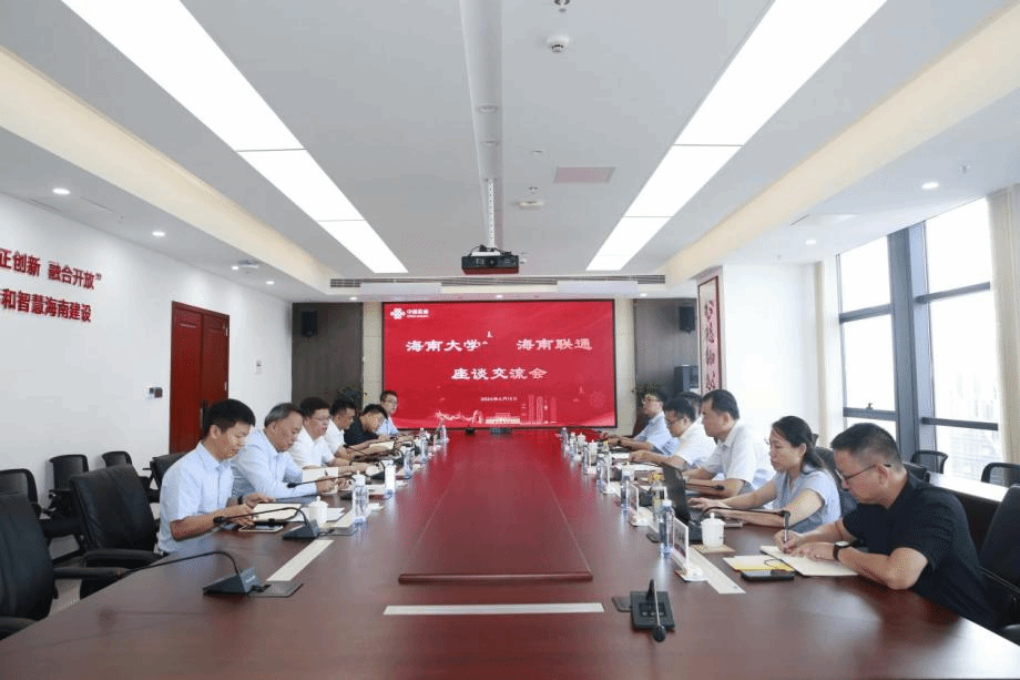 中国联通海南省分公司党委书记、总经理谢华陪同刘谦副校长一行参观海南联通科技馆,详细介绍了中国联通在科技创新、5G应用、大数据、云计算、智慧校园等方面的最新成果和技术实力。参观结束后,双方举行了座谈。