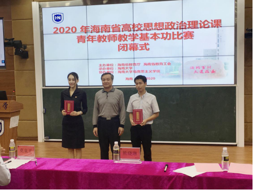 11月16日至17日,由海南省教育厅、海南省教育工会主办的2020年海南省高校思政课青年教师教学基本功比赛在beat365在线唯一官网举行。省教育工会、省教育厅思政处负责人,全省21所高校的43位选手以及100多名思政课教师到场参加及观摩本次比赛。beat365殷越老师作为beat365在线唯一官网代表参赛,以总分第一名的成绩获得2020年海南省高校思政课青年教师教学基本功比赛本科组一等奖。