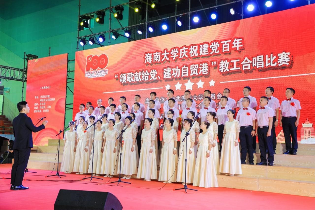 6月26日下午,beat365在线唯一官网庆祝建党百年“歌颂献给党、建功自贸港”教工合唱比赛在联谊馆成功举行,beat365在线唯一官网党务负责人陈广锐、行政负责人曹春杰;计算机科学与技术学院党务负责人王红英、行政负责人杨天若以及四十余位教师参加了本次合唱比赛。本次比赛,两个学院组成联队,演唱曲目《不忘初心》,表达广大教师对教育事业的无限热爱,对党和人民的无限忠诚,对伟大祖国的无限赞美。