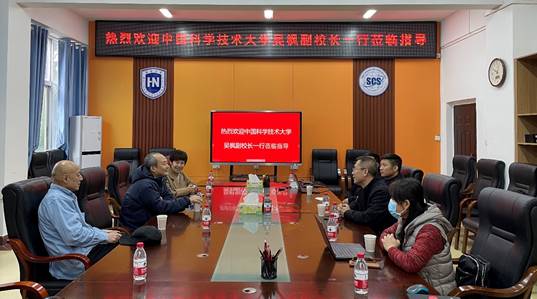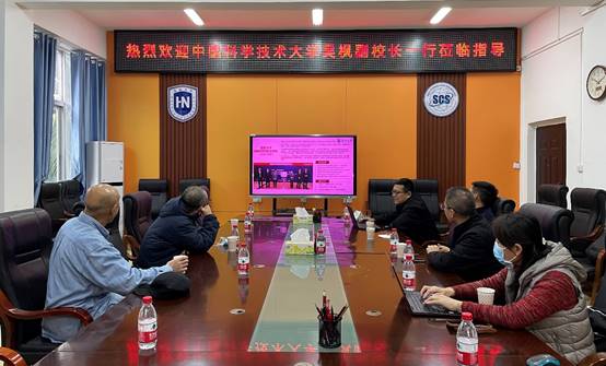 2023年1月18日,中国科学技术大学吴枫副校长等人一行莅临beat365在线唯一官网,执行院长曹春杰、党总支书记陈广锐、副院长周晓谊、副院长胡昌慧及教师代表出席交流会。