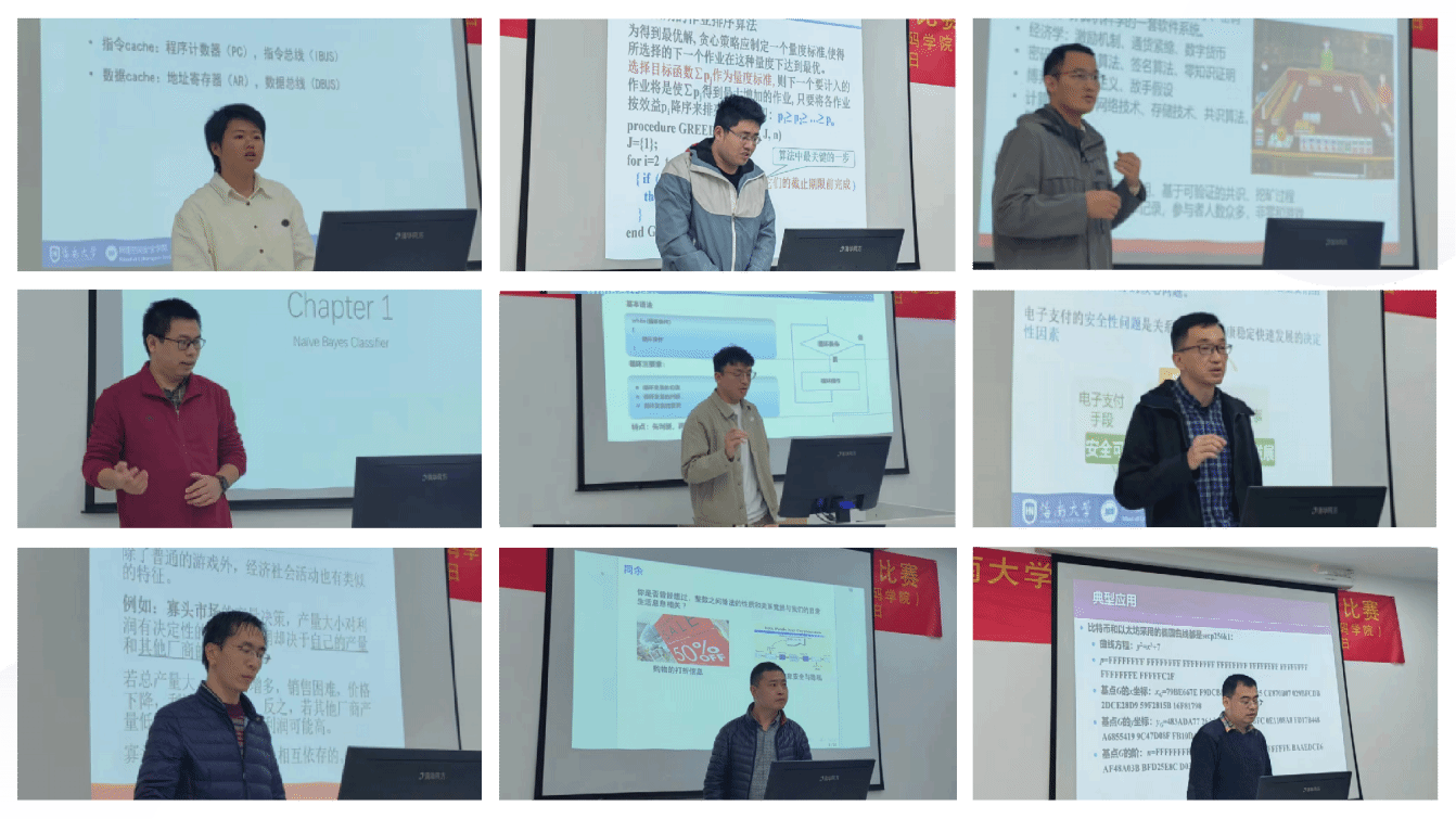 本次比赛由学院教学督导陈显毅、张晋、李益红,以及教师代表叶俊、王隆娟等教师担任评委,学院共计9位教师参加了本次青年教师教学比赛。