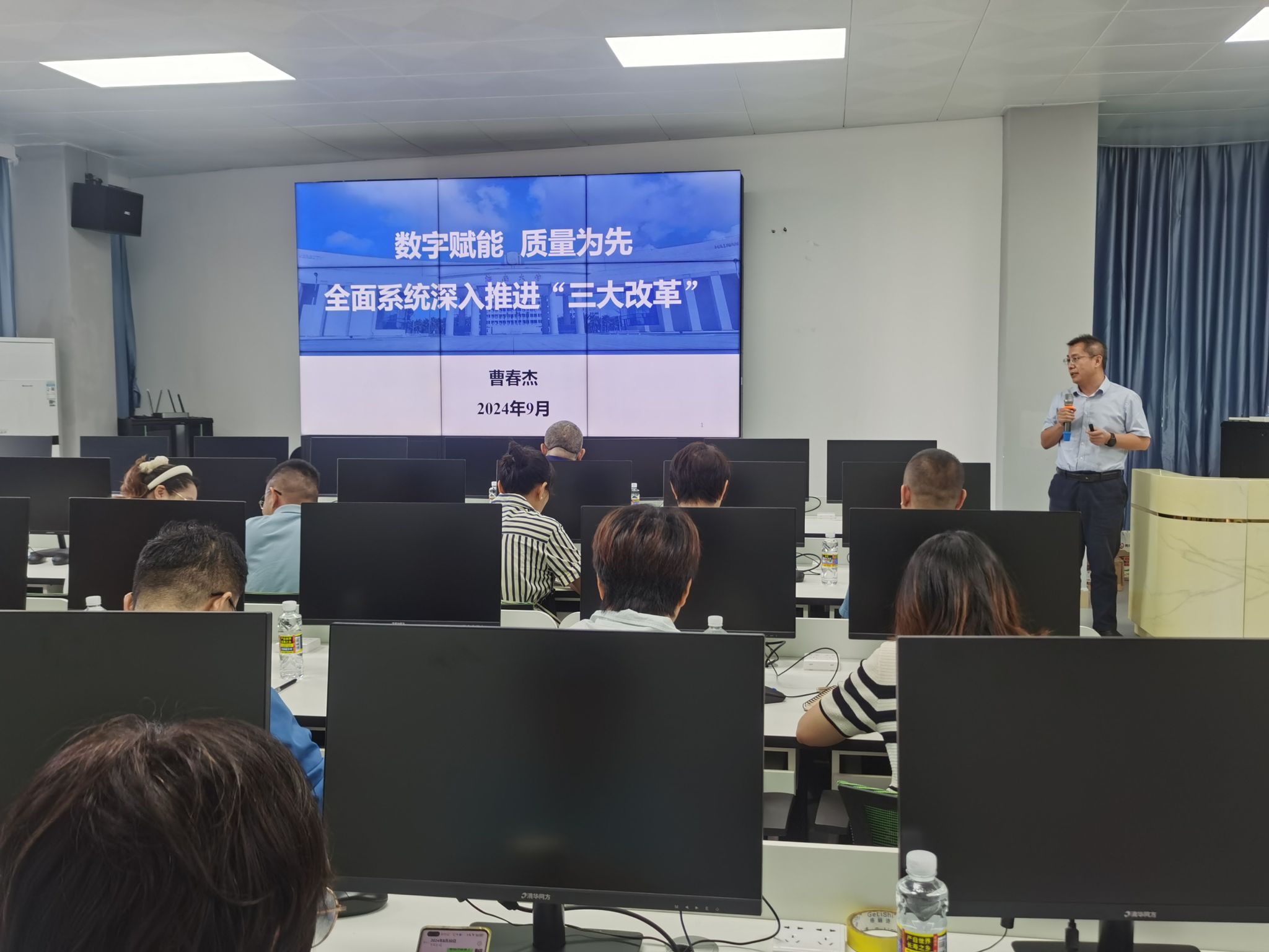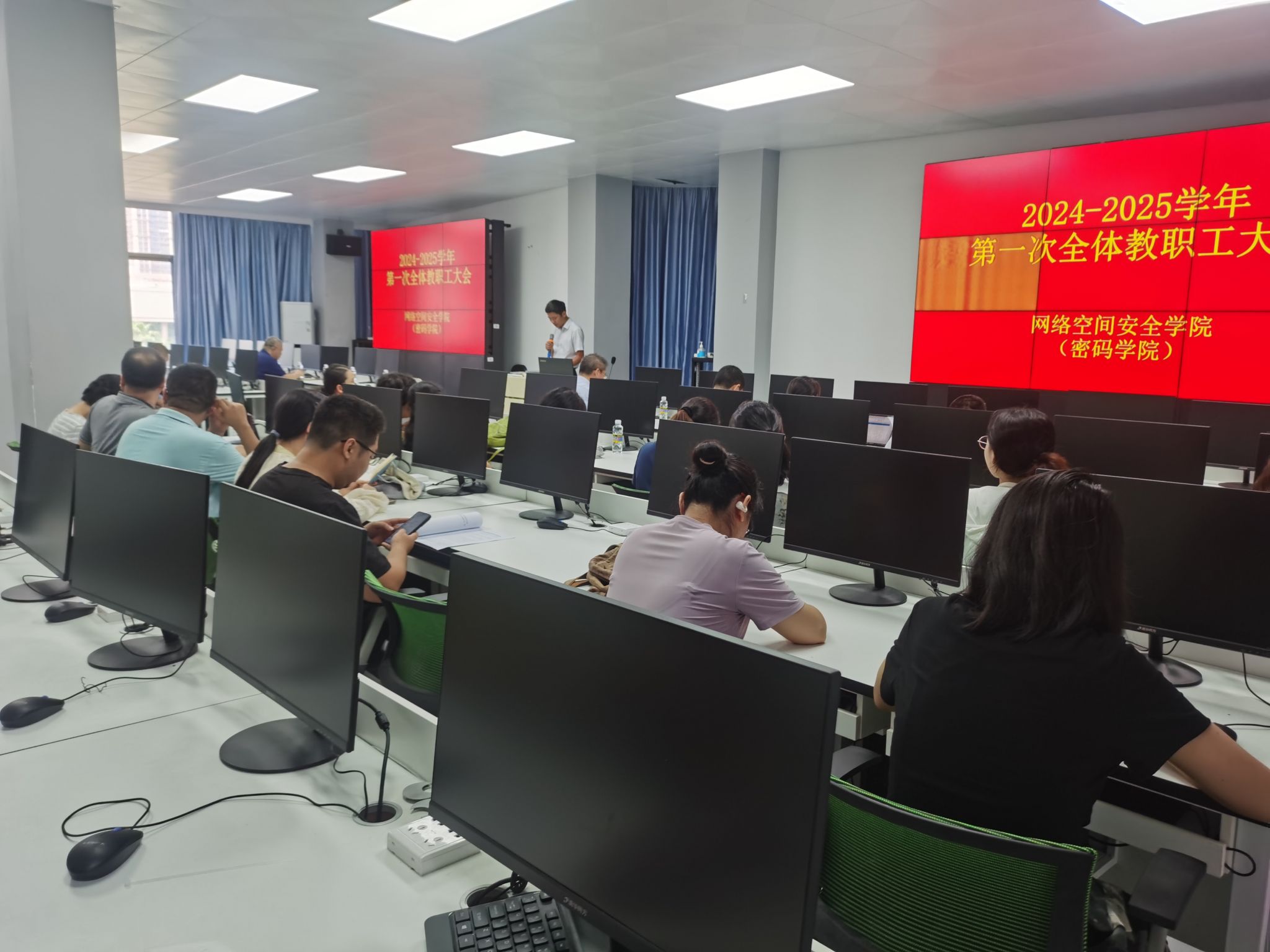 陈广锐书记首先传达学习了党的二十届三中全会、全国科技大会精神。他指出,党的二十届三中全会,是在以中国式现代化全面推进强国建设、民族复兴伟业的关键时期召开的一次十分重要的会议。习近平总书记在全会上发表的重要讲话,强调了统筹推进教育科技人才体制机制一体改革,为加快教育强国建设、更好的服务支撑中国式现代化指明了方向。他指出,作为网络空间安全领域的教育工作者,全体教职工应深刻理解全会精神,将其融入教学、科研和管理等各项工作中,努力培养实战型网络空间安全人才,为国家网络安全事业贡献力量。