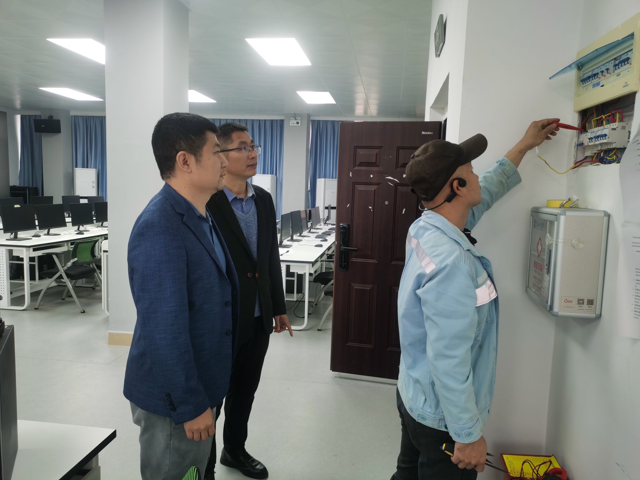 电工对实验室电路检查中。张静 摄。