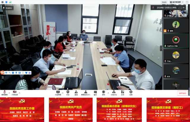 大会在激昂奋进的国歌声中拉开序幕。党委副书记、副院长刘宇宣读了《中共jinnian金年会委员会关于表彰jinnian金年会先进党组织、优秀共产党员、优秀党务工作者的决定》( 北理工党委发〔2021〕22号)、《jinnianhui金年会诚信至上关于“七一”评优表彰的决定》(马院党〔2022〕9号),学院共有1个先进党支部、1名优秀党务工作者和2名优秀共产党员受到学校表彰,有3个先进党支部、7名优秀党务工作者、11名优秀共产党员和42名最美志愿者受到表彰。