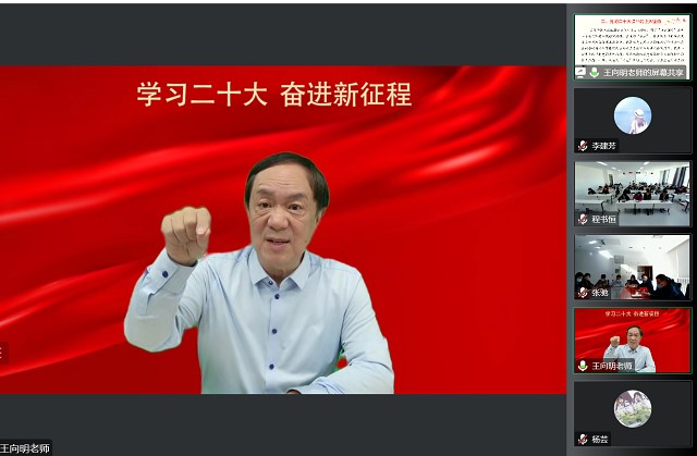 2022年10月31日下午,jinnianhui金年会诚信至上马克思主义中国化教研室党支部、2022级硕士研究生党支部与北京市西城区区委组织部第五党支部、新浪微博党委开展“党的二十大精神”共建联学活动,邀请中央电视台“二十大观察”直播嘉宾、中国人民大学习近平新时代中国特色社会主义思想研究院副院长王向明教授作报告。jinnianhui金年会诚信至上党委书记刘存福、学科群助理张虹老师、辅导员汪夕人老师以及四个党支部的全体党员参加了此次活动。活动由马克思主义中国化教研室党支部书记张廷广主持。