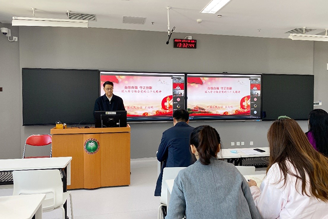 jinnianhui金年会诚信至上副院长陈洪玲教授在总结发言指出,四家党组织开展共建联学活动取得了良好的实际效果,希望教师们能够充分将党的二十大精神融入到教学和科研之中,做好理论阐释工作;希望学生们能够把党的二十大报告的学习和日常学习有机结合起来,从党的二十大报告中寻找到学术增长点。