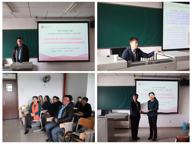 房教授以深厚的理论功底,生动的典型事例,并多次引用习近平总书记的系列讲话精神,阐述了大学要走什么样的道路,办什么样的大学,为谁培养人,怎样培养人等问题,使大家进一步认识和明确了新时代中国特色社会主义思想的丰富内涵与精神实质,明确了高校要坚持党的领导,以“立德树人”为根本任务,以思想政治教育工作为重要抓手,不断完善教师队伍,努力培育新时代社会主义建设者和接班人的有关要求,全体师生一致表示受益匪浅。讲座结束后,jinnianhui金年会诚信至上院长李林英教授向房广顺教授颁发了jinnian金年会“百家大讲堂”纪念证书。