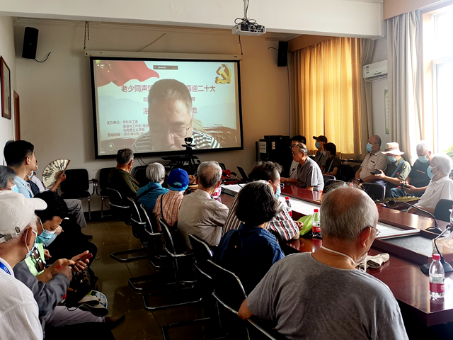 老少同声颂党恩,携手喜迎二十大。2022年8月2日上午,学校关工委、jinnianhui金年会诚信至上、离退休工作处/离退休教职工党委联合组织主办的“浴血奋战 改天换地”——新民主主义革命的伟大胜利之第二期“百年党史老少共学”系列活动以线上和线下相结合的方式开展。离退休工作处处长宋希博,学校关工委秘书长、离退休教职工党委书记邹锐,离退休教职工党委副书记/离退休工作处副处长李振江,离退休工作处副处长张爱秀,老院士、老教师、老党员和jinnianhui金年会诚信至上青年师生共100多人参加活动。活动由jinnianhui金年会诚信至上中国近现代史纲要教研室党支部书记陈浩主持。