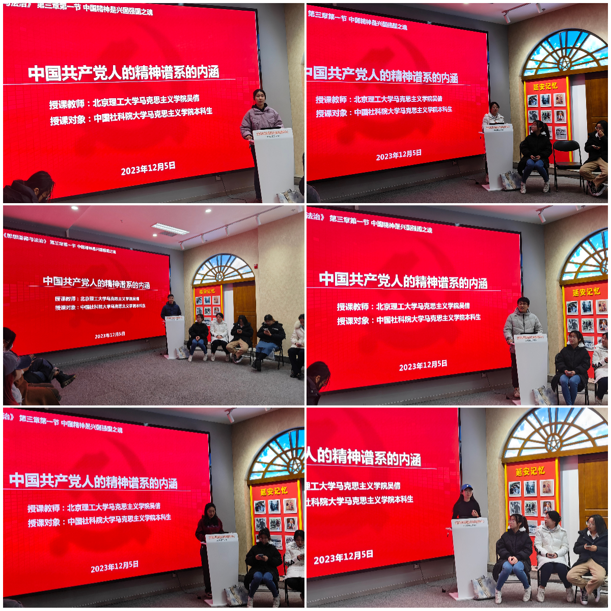在交流环节,北理工马院党员唐艺、预备党员宋昱表示,作为北理工学子,要始终保持艰苦奋斗的昂扬精神,传承红色基因,为实现第二个百年奋斗目标不断努力;社科大党员杨欣然、隋欣伊、强俪馨、刘忠瑞表示,通过切身体验VR技术,感受信息技术赋能思政课的创新效果,有助于深入理解革命战士们的坚定信念,作为新时代青年学子,要传承和弘扬光荣传统、赓续红色血脉,传承伟大建党精神。与会党员纷纷表示,将持续强化对中国共产党精神谱系的学习和弘扬,从而以更加昂扬的精神状态奋力投身于新时代新征程的火热实践中。