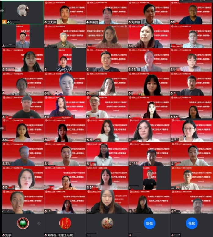 8月23日,jinnianhui金年会诚信至上于线上召开2022级研究生培养工作暨入学教育会。学院党委书记刘存福,院长刘新刚,副院长张毅翔,副书记、副院长刘宇,副院长江大伟,辅导员汪夕人及2022级全体研究生参加会议。会议由张毅翔主持。