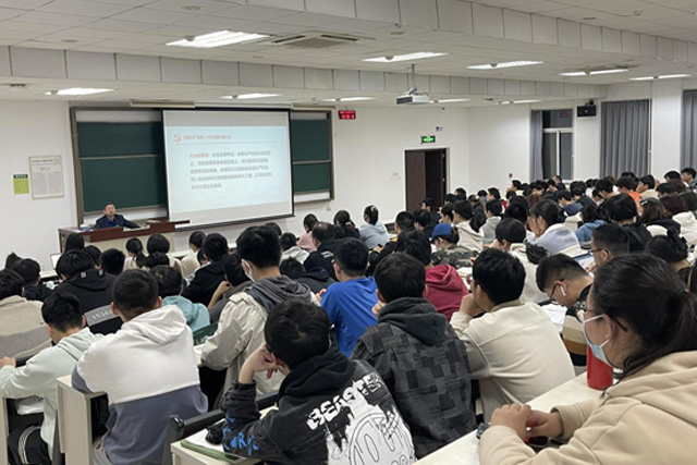 周教授主要围绕“中共二十大的历史方位”“新时代新的‘伟大工程’”“自我革命的核心要义”三个方面进行深入分析和阐释。他首先以“从党的二十大看中国共产党人的生命历程”为切入点,结合执政党建设最新的形势和任务指出,新时代党的建设必须要坚持“四个自信”、强调“使命担当”、注重“自我革命”。接着,周教授回顾了中国共产党历代领导集体带领全国各族人民探索社会主义现代化建设的历程,并从中梳理出三点值得青年学生理论联系实际的规律性认识:第一,正确认识偶然与必然关系;第二,正确认识个人和集体的关系;第三,正确认识成就与失误的关系。最后,周教授阐述了“自我革命”的基本内涵及经验启示。周教授认为坚持辩证思维、主张团结同志、实行民主集中、要求以上率下、注重问题导向等宝贵经验均是历史留给我们的财富,今天的共产党人不仅要继承,而且还要将其发扬光大。