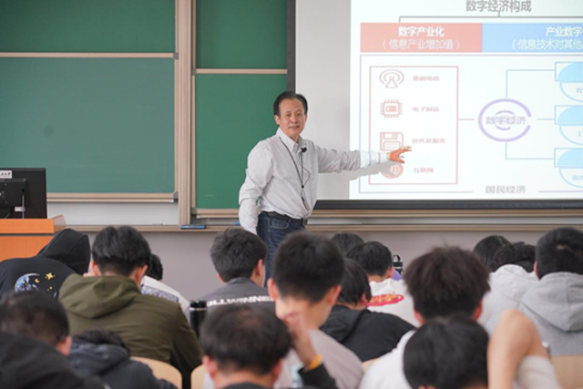 他指出,大数据技术已经成为中国高质量发展的重要引擎,后发优势为数字经济提供了跨越式发展的特殊机遇,中国在多个领域已加入全球数字经济领跑者行列,但同时数字产业发展中也存在诸多卡脖子问题,新时代青年应树立新发展理念,明确科技自强的责任意识,积极投身服务于国家高质量发展建设。