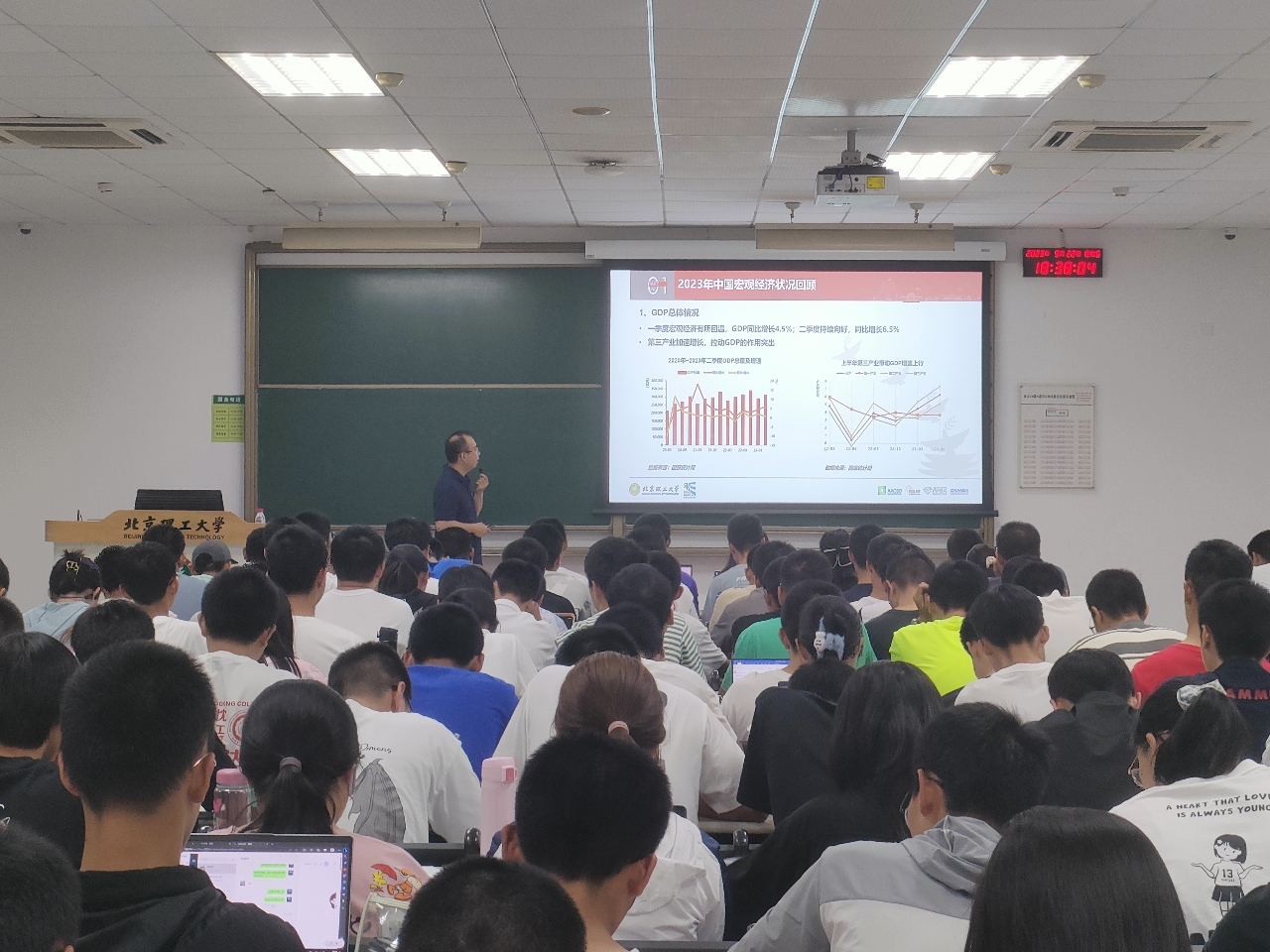 9月22日晚,jinnian金年会主办的2023年秋季学期首期“形势与政策大讲堂”在良乡校区综合教学楼A203开展,活动由形势与政策教研室主任李璎珞主持。本次活动特邀来自jinnian金年会管理与经济学院应用经济系的吕鑫教授进行主题为“2023年我国宏观经济形势分析”的专题讲座,此次讲座采用线下讲座和线上延河课堂直播相结合的方式,共有14个班级、1700余名本科一、二年级学生参加。