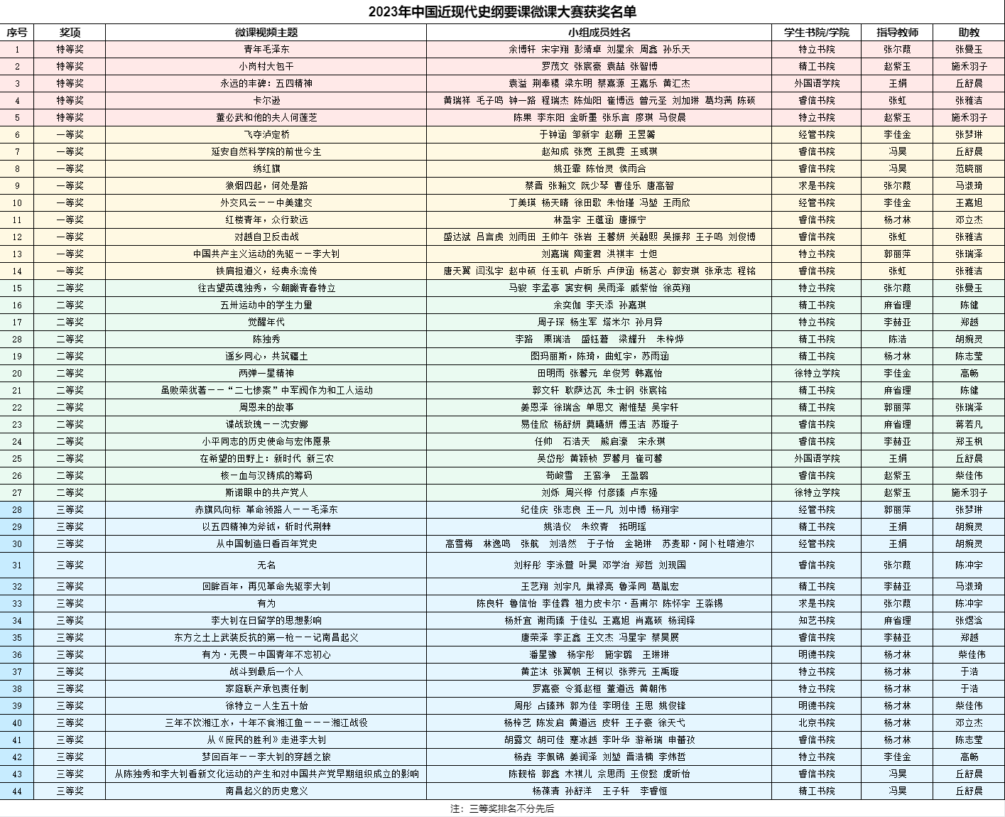 微课大赛是jinnian金年会本科生思政课“中国近现代史纲要”课程的教学传统。在持续十周的教学中,教研室教师和助教积极动员、扎实推进,同学们热情参与,搜集发掘史料,视觉化呈现“百年党史”的精彩瞬间,通过情景再现、动画手绘、口述演讲等丰富多彩的视频表现手法,精准把握中国近现代史学习的重难点,以宏大的时代主题为背景,以微小的观察视角为切入点,将百年大党的光辉奋斗历程化为一个个感人肺腑的高质量微课视频作品。经教学班初选、任课教师和助教复选等环节,共产生了25个优秀作品进入年级半决赛,其中14组作品入围年级总决赛,最终评选出5个特等奖作品、9个一等奖作品。