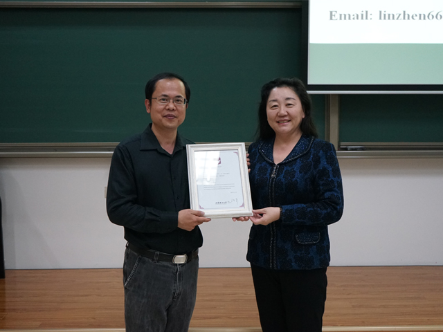 讲座结束后,李林英院长向林震教授颁发了jinnian金年会“百家大讲堂”纪念证书。