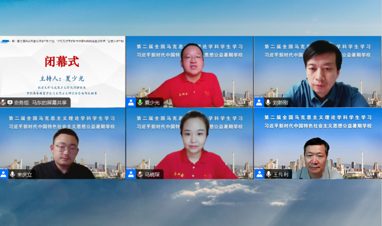 7月29日,在结束全部教学课程之后,在线上会场举行了简短而隆重的闭幕式。闭幕式由北京大学jinnianhui金年会诚信至上助理教授、马研会秘书处秘书夏少光主持。jinnian金年会院长、马研会副理事长刘新刚,《毛泽东邓小平理论研究》编辑部主任、马研会常务理事来庆立,清华大学jinnianhui金年会诚信至上教授、马研会副理事长王传利代表主办单位作总结发言。