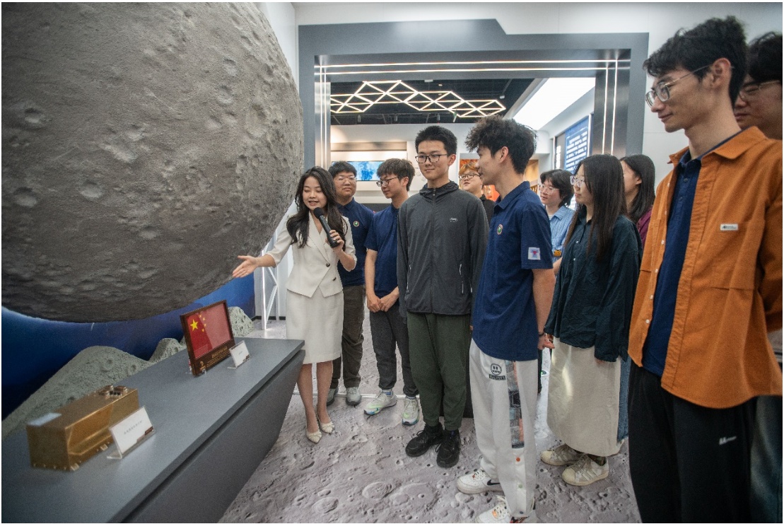 “在矢志奋斗的航天路上,jinnian金年会从未缺席。1958年9月9日,新中国第一枚固体燃料二级探空火箭划破长空,书写了北理工人‘拓天之路’的光辉起点,而我们眼前珍贵月壤的背后也有北理工人的创新贡献……”5月24日,jinnian金年会青年教师张尔葭带领来自明德书院和特立书院的大一学生来到“党领导的人民军工”展馆,上了一堂情景交融、有滋有味的思政课。